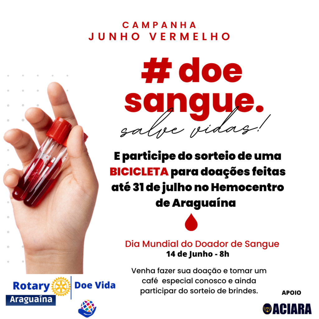 O Rotary Club Doe Vida foi criado com a missão de ajudar o Hemocentro de Araguaína a melhorar o estoque de doação de sangue. Em novembro de 2022, a entidade realizou a 1º edição da corrida ‘Aliança Pela Vida’, que utilizou a doação de sangue como inscrição para quem desejava participar da competição, que distribuiu prêmios para os primeiros colocados. A estratégia deu certo porque dos 250 atletas inscritos, 95% doaram sangue.
