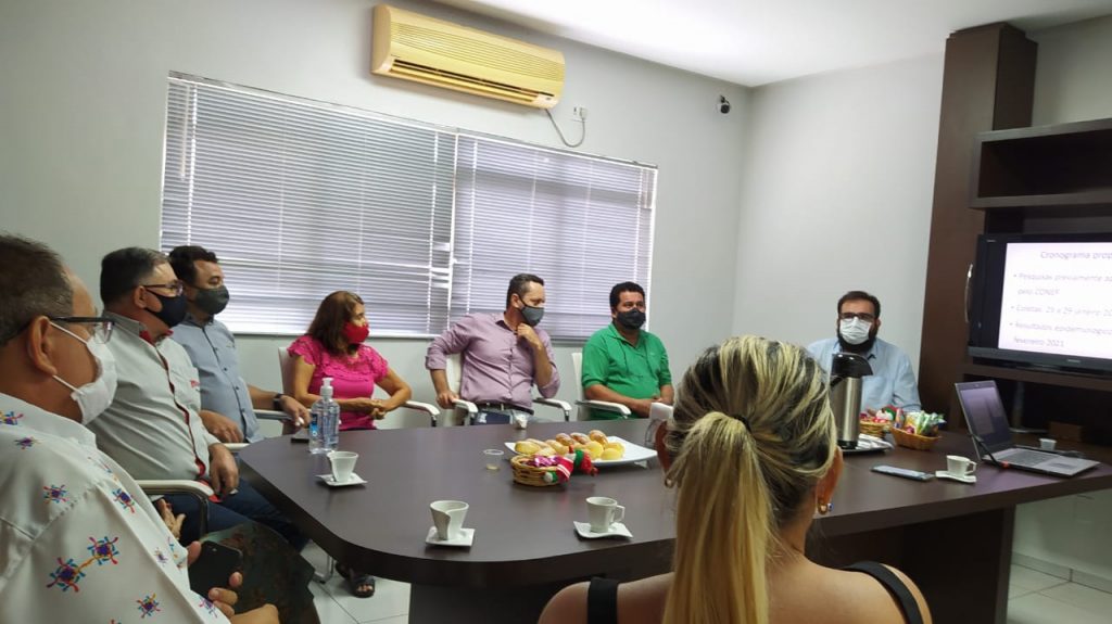 O Professor e Doutor da Universidade Federal do Tocantins, José Carlos Ribeiro Júnior, apresentou à diretoria da Associação Comercial e Industrial de Araguaína (ACIARA), duas propostas do projeto de pesquisa que vão mapear o nível de contaminação da população de Araguaína, pelo novo coronavírus. A reunião foi realizada nesta quarta-feira, 09, na sede da entidade, com a presidente da ACIARA, Hélida Dantas, o vice-presidente, Denilson Silva, os diretores Manoel Messias, Ulysses Ayres, Elza Rezende e Estevão Nascimento e a gerente Alessandra de Oliveira. Também estavam presentes, a Secretária Municipal de Saúde, Ana Paula Abadia, Superintendente da Vigilância em Saúde, Eduardo Freitas e técnico da Vigilância, Bruno Medrado, além da doutoranda em Medicina Tropical e Saúde Pública da Universidade Federal de Goiás, Monike Oliveira que faz parte da equipe que desenvolveu o projeto.