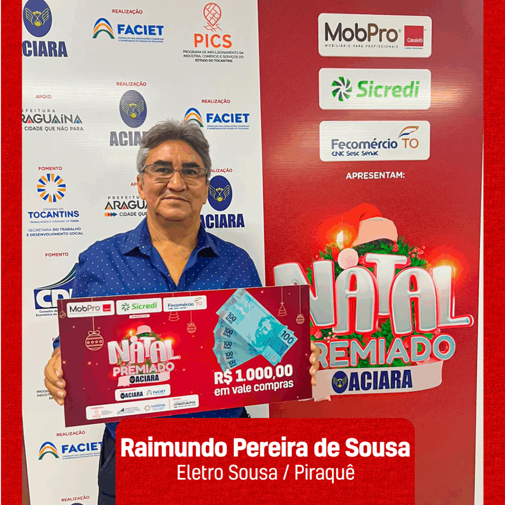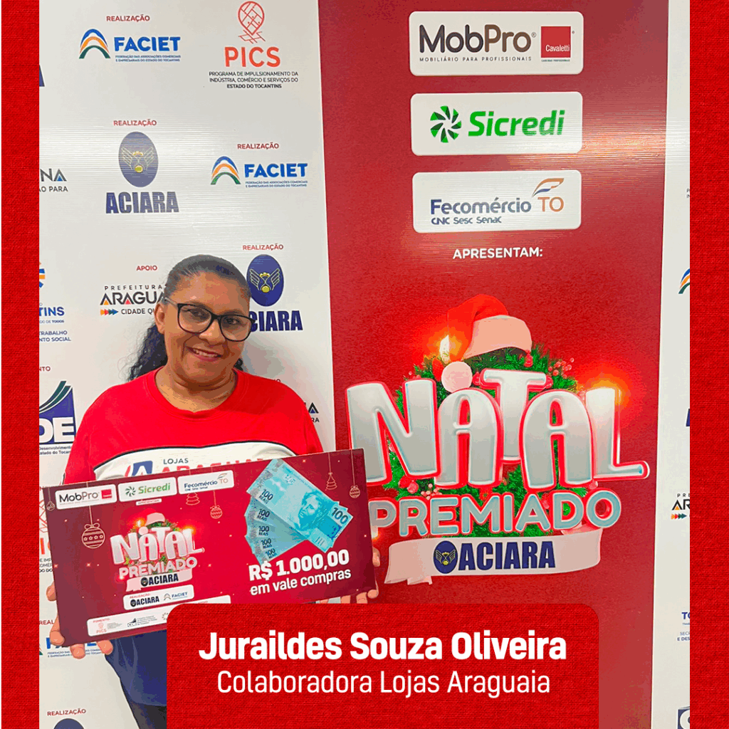Foi na sede da Associação Comercial e Industrial de Araguaína (ACIARA) que oito ganhadores do 1º sorteio da Campanha Natal Premiado receberam os prêmios. O sorteio foi realizado no dia 30 de novembro, com transmissão ao vivo na plataforma digital da entidade. É a primeira vez que a campanha natalina tem dois sorteios. O último está marcado para o dia 27 de dezembro, com 24 prêmios, entre eles uma moto Yamaha.