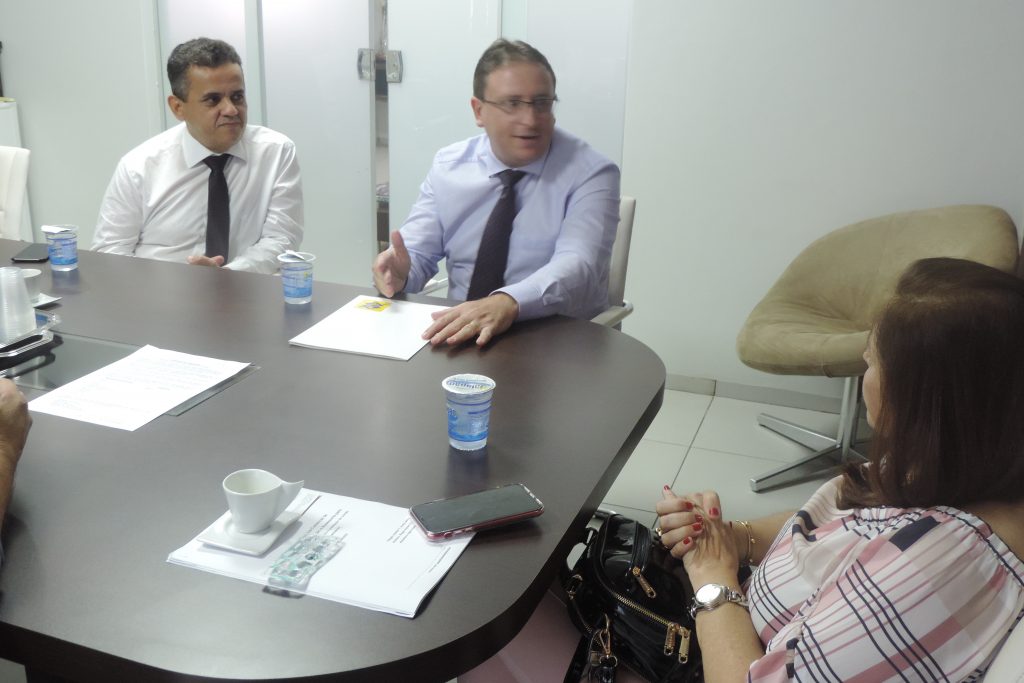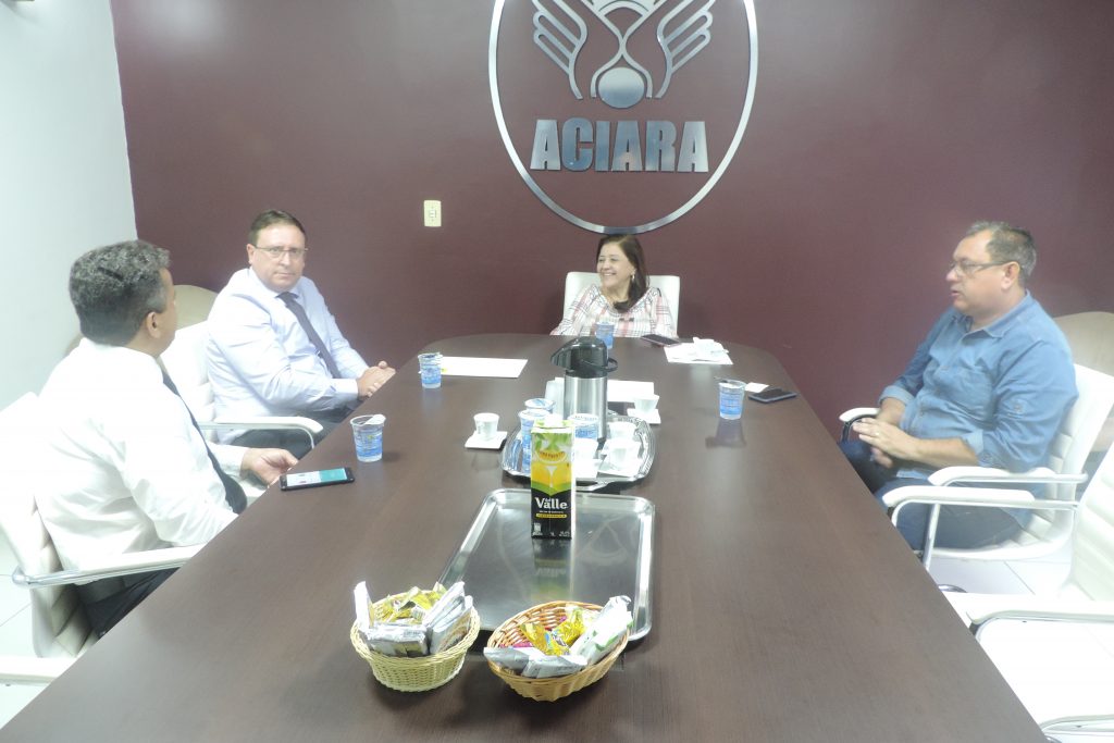 A presidente da Associação Comercial e Industrial de Araguaína, Hélida Dantas, e o vice, Denilson Silva, receberam na tarde desta terça-feira, 17, o gerente geral do Banco do Brasil, Edilceu Kloster e José Aparecido Borges, gerente de Relacionamento de Empresas.
