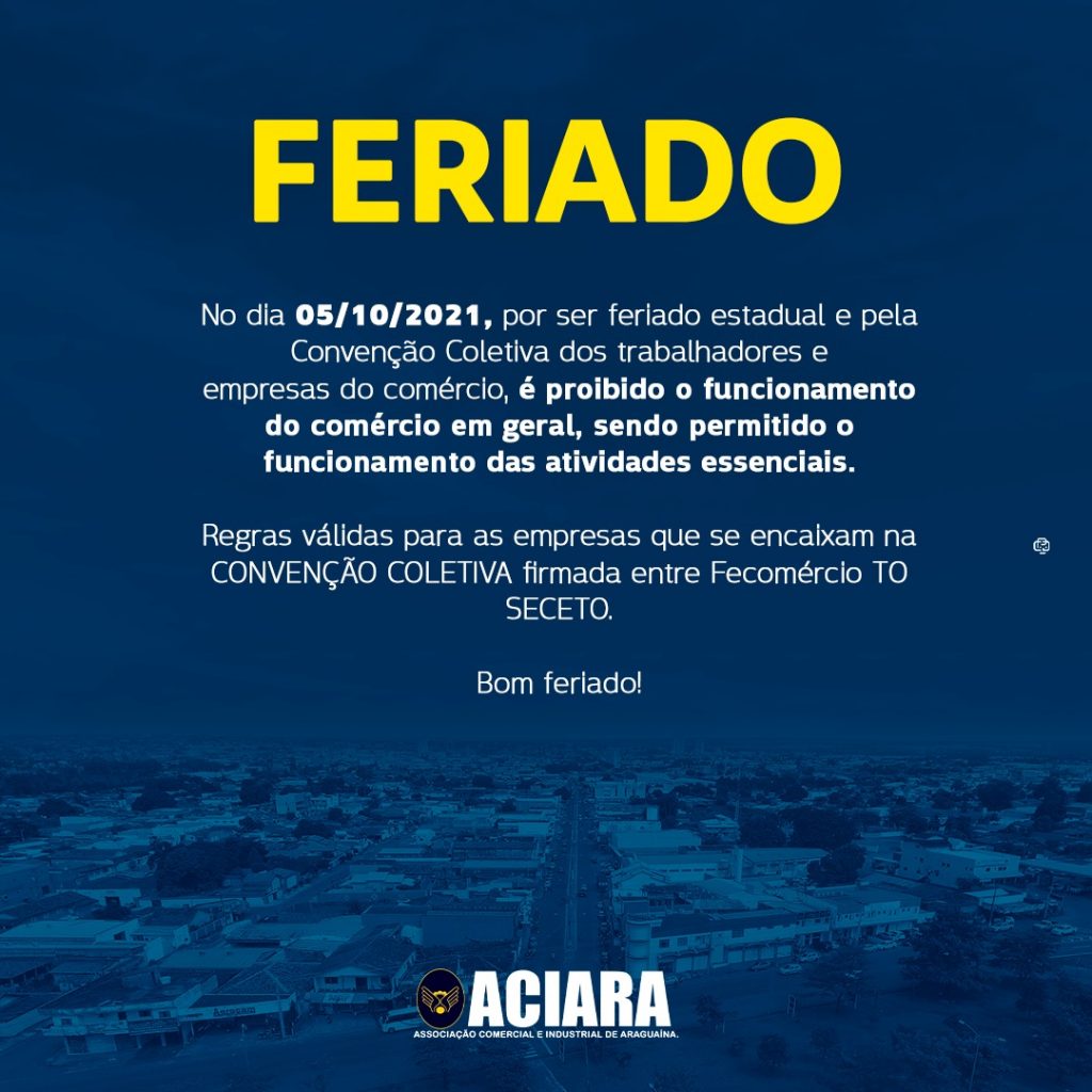 Feriado - Criação do Tocantins - 05.10