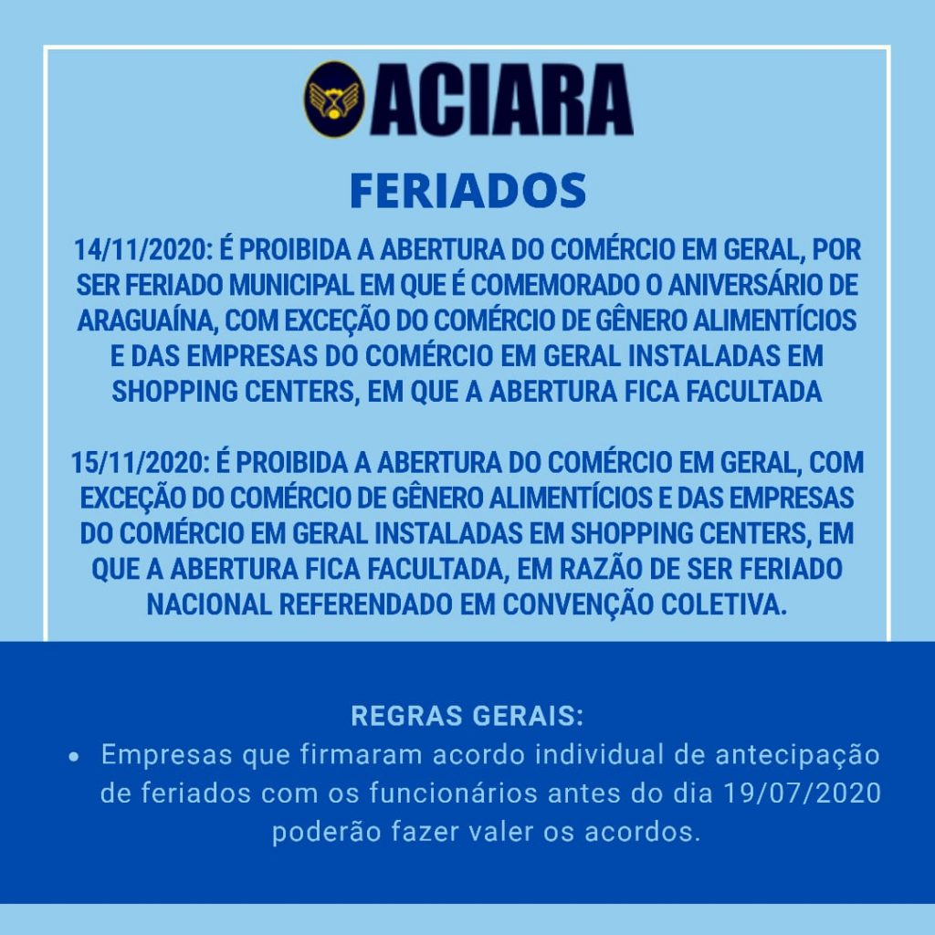 Feriados - Aniversário de Araguaína e Proclamação da República